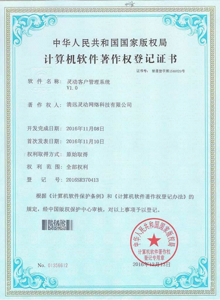 灵动客户管理系统V1.0-软著-清远灵动网络科技有限公司
